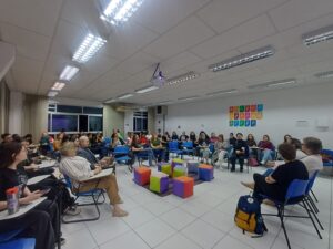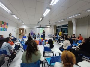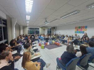 A ação é parte da atividade integrada entre as disciplinas de Gestão Escolar, Tecnologias da Informação e Comunicação e Modalidades II, ministradas pelas professoras Cristiane Theiss Lopes e Jamile Delagnelo, respectivamente. As rodas de conversas oportunizaram espaços de troca, reflexão e diálogo sobre as práticas e experiências na Educação, que incluíram temas como Educação Infantil, Ensino Fundamental, Modalidades EJA, EPT e Gestão Escolar.