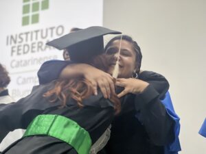 O Instituto Federal Catarinense (IFC) Campus Blumenau formou na noite do dia 20 de março, no auditório da Associação de Municípios do Vale Europeu (AMVE), 28 acadêmicos de três cursos superiores: Bacharelado em Ciência da Computação, Bacharelado em Engenharia Elétrica e Licenciatura em Pedagogia. A colação de grau representa um feito importante na instituição, que tem como missão proporcionar Educação Profissional, Científica e Tecnológica gratuita e de qualidade, por meio do Ensino, da Pesquisa e da Extensão, comprometida com o desenvolvimento sustentável e com a formação inclusiva, integral e cidadã.