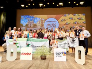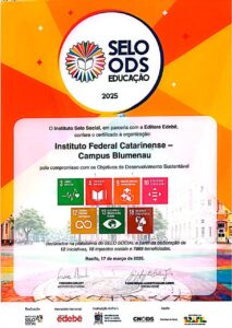 O Instituto Federal Catarinense (IFC) Campus Blumenau está entre as 129 instituições de ensino certificadas com o Selo ODS de Educação 2025. O reconhecimento nacional é concedido a organizações educacionais, públicas e privadas que desenvolvem iniciativas alinhadas aos Objetivos de Desenvolvimento Sustentável (ODS), além de estimular a participação em ações que auxiliem no alcance das metas da agenda 2030, especialmente o ODS-4: Educação de Qualidade. A cerimônia ocorreu na noite desta quarta-feira (18/03), no Teatro Luiz Mendonça, em Recife, Pernambuco.