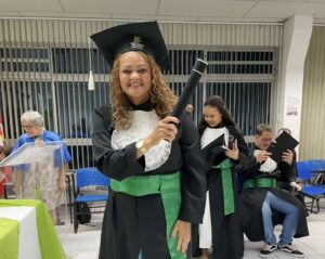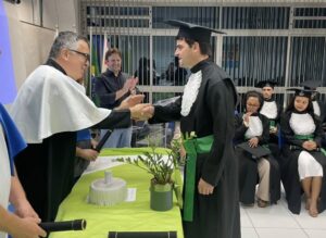A solenidade contou com a presença de familiares e servidores, que prestigiaram a entrega dos certificados e celebraram o resultado do esforço coletivo. Para Iva, a EJA foi muito importante para que ela pudesse terminar os estudos. “Foi uma oportunidade única na minha vida, ter o ensino médio completo era meu sonho e, agora, graças a Deus e ao EJA, estou formada”.