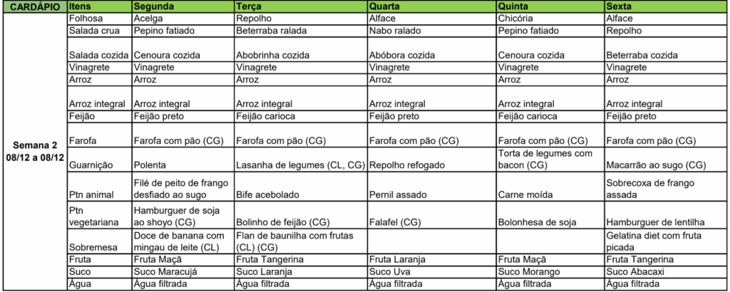 O detalhamento do porcionamento das carnes a serem servidas nas refeições diárias e incidência mínima mensal é detalhada por meio da Tabela 02.